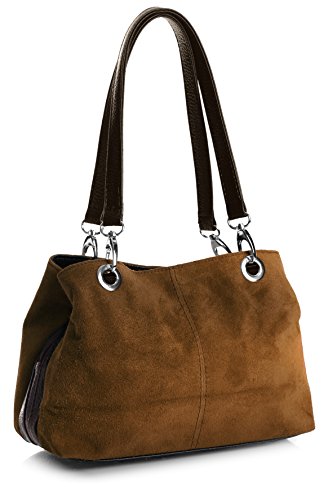 Big Handbag Shop offer Big Handbag Shop Womens Small Twin Top Multi Zip Pockets Suede Leather Shoulder Bag (Dark Tan - Brown Trim). This awesome product currently limited units, you can buy it now for £21.99, You save -